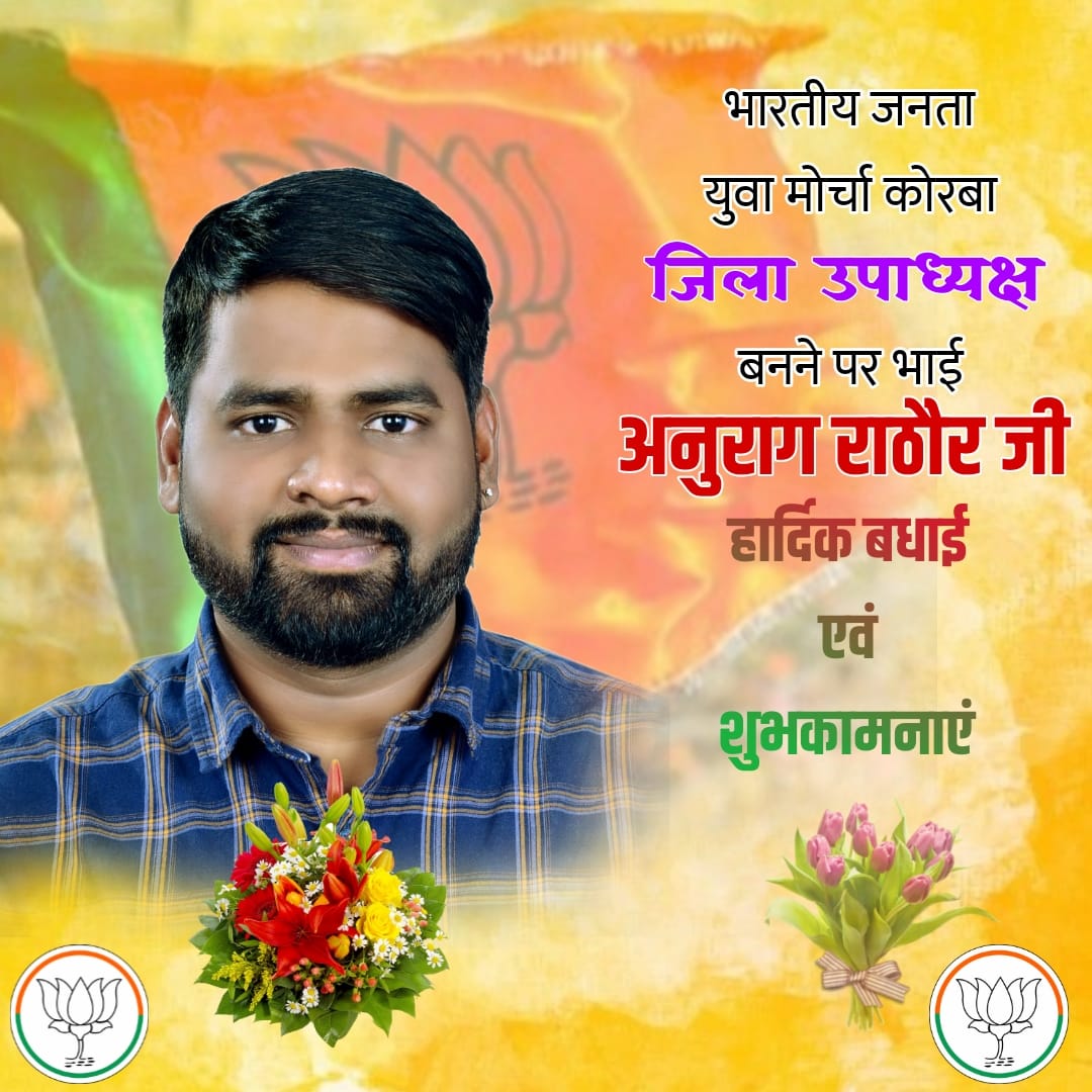 कोरबा जिले के युवा नेता अनुराग राठौर को भारतीय जनता पार्टी ने बड़ी जिम्मेदारी दी है ।अनुराग राठौर भाजयुमो के जिला उपाध्यक्ष बनाए गए हैं । उनकी इस उपलब्धि से परिजन और शुभचिंतकों में काफी हर्ष है। आपको बता दें कि पिछले कई वर्षों से अनुराग राठौर जिले में सक्रिय भूमिका निभा रहे थे जिसके कारण आज उन्हें पार्टी ने इस उपलब्धि से नवाजा है।