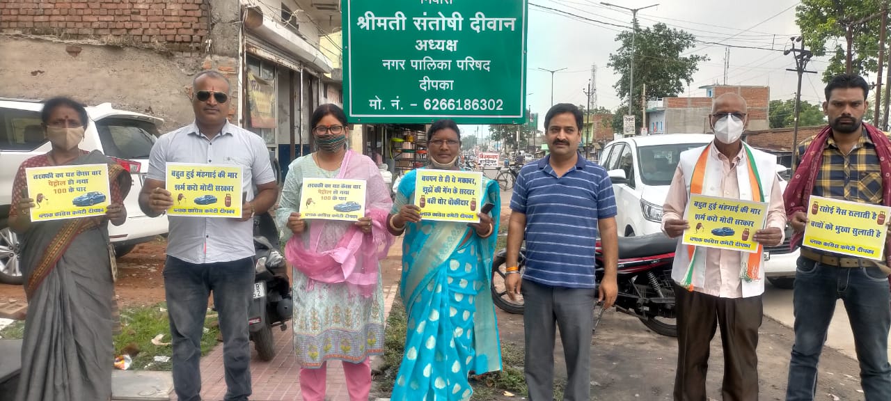 प्रदेश कांग्रेस कमेटी एवं जिला कांग्रेस कमेटी के निर्देशानुसार ब्लाक कांग्रेस कमेटी दीपका के तत्वाधान में बढ़ती हुई महंगाई के विरोध मे केंद्र सरकार के खिलाफ विरोध प्रदर्शन किया गया जिसमें प्रमुख रुप से ब्लॉक कांग्रेस कमेटी अध्यक्ष मनोरा लकड़ा, नगर पालिका अध्यक्ष संतोषी दीवान,विशाल शुक्ला विधायक प्रतिनिधि, केदार सिंह,श्रीदेवी नायर, उत्तम दुबे ,आरती जायसवाल, कमलेश जायसवाल एवं अन्य कार्यकर्ता उपस्थित थे