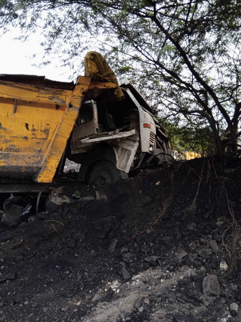 Home Uncategorized खदान के जीरो पॉइंट से कोयला लोड कर आ रही ट्रेलर पलटा,...
