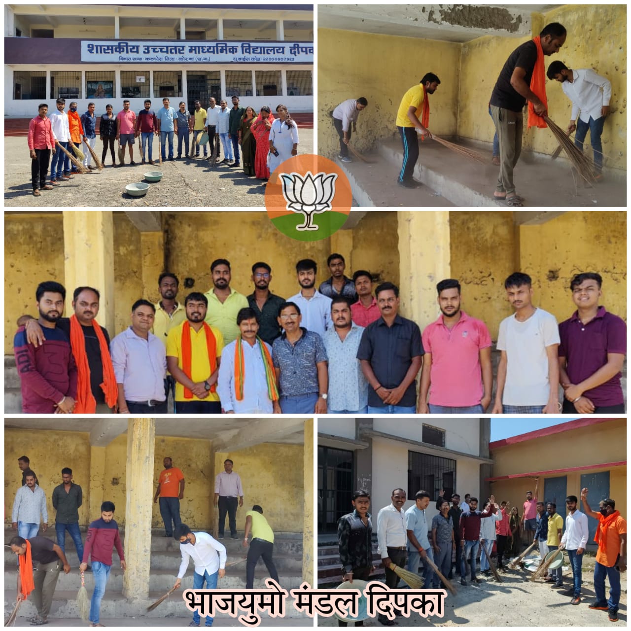 आज दिनांक 2 अक्टूबर को महात्मा गाँधी जी के जयंती के अवसर पर सेवा ही समपर्ण भाव के तहत राष्ट्रिय नेतृत्व के आवाह्न पर भारतीय जनता युवा मोर्चा मंडल दिपका के द्वारा शास.स्कूल दिपका प्रांगण में स्वच्छता अभियान का कार्यक्रम किया गया , जिसमे प्रमुख रुप से भाजयुमो जिलाअध्यक्ष पंकज सोनी,महामंत्री अनुप यादव,जिला उपाध्यक्ष एवं कार्यक्रम प्रभारी रंजू यादव,भाजपा जिला कार्यसमिति सदस्य अरुणिश तिवारी,पिछड़ा वर्ग मोर्चा जिला उपाध्यक्ष बुधवारा देवांगन,मंडल अध्यक्ष दिपका सुर्यप्रकाश शर्मा, महिला मोर्चा अध्यक्ष ज्योती तिवारी,महामंत्री मीना सिन्हा,मंडल महामंत्री राजू प्रजापति,कोषाध्यक्ष रामपुकार पंडित,पार्षद रोहित जयसवाल, भाजयुमो मंडल महामंत्री सौरभ गुरुद्वान, उपाध्यक्ष प्रशांत शर्मा,दुर्गेश यादव,विकास सिन्हा,मंत्री अमित यादव,सोशल मीडिया प्रभारी नवीन साहू,प्रचार प्रसार मंत्री अतुल सिंह, सहमीडिया एवं मंडल कार्यक्रम प्रभारी दीपक दुबे,कार्यलय प्रभारी पारस चंद्रा,हितेश अग्रवाल,मनीष चंद्रा,साहिल,दुर्गेश श्रीवास एवं भाजयुमो दिपका के समस्त कार्यकर्ता उपस्थित रहे…