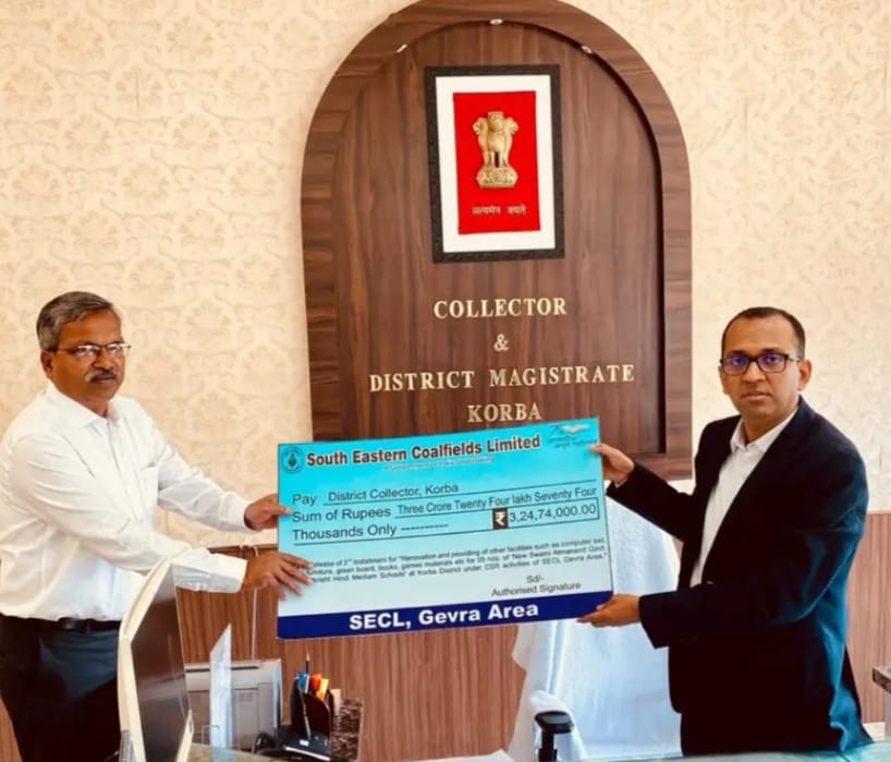 एसईसीएल, गेवरा क्षेत्र ने कोरबा ज़िले के खदान प्रभावित क्षेत्रों के 05 शासकीय उच्चतर माध्यमिक विद्यालयों (दीपका, रंजना, तीवरता, कुसमुंडा एवं छिंदपुर विद्यालयों) को शासकीय आत्मानंद उत्कृष्ट विद्यालयों में रूपांतरित करने हेतु सीएसआर मद अन्तर्गत कुल राशि रू. 811.85 लाख के कार्यदेश जारी किया गया हैं, जिसके संदर्भ में द्वितीय किस्त की कुल राशि रू. 324.74 लाख डिपोजिट बेसिस पर ज़िला कलेक्टर, कोरबा को जारी कर दिया गया हैं । एसईसीएल, गेवरा क्षेत्र के महाप्रबंधक श्री एस.के. मोहंती ने ज़िला कलेक्टर, कोरबा श्री अजीत वसंत को रू. 324.74 लाख का चेक सौपा। एसईसीएल, गेवरा क्षेत्र के नोडल ऑफिसर (सीएसआर) डॉ. सुरेश चौधरी ने बताया कि एसईसीएल गेवरा क्षेत्र द्वारा अब तक उक्त कार्यों हेतु दो किश्तों में कुल 649.48 लाख रू जारी किया जा चुका हैं । उक्त राशि का उपयोग भवन रेनोवेशन, अतिरिक्त कक्षा कक्ष/भवन बनाने, शोचालय एवं पुस्तकालय कक्ष निर्माण, कम्प्यूटर, टेबल , डेस्क बेंच आदि प्रदान करने में किया जा रहा हैं । एसईसीएल के उक्त सामाजिक सरोकार से खदान प्रभावित क्षेत्रों के बच्चो को अच्छी गुणवत्तापूर्ण शिक्षा हेतु बेहतर आधारभूत संरचना/ भवन एवं लॉजिस्टिक सपोर्ट प्राप्त होगा, जिससे कोयलांचल क्षेत्र के बच्चो को एक अच्छा भविष्य प्राप्त होगा ।