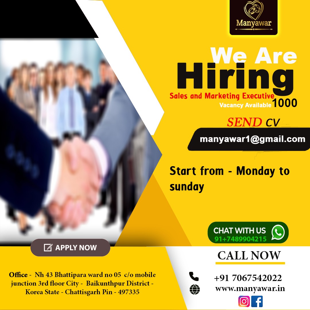 मान्यवर कंपनी के सीईओ कुनाल कुमार गुप्ता कहना है कि हम लोगो को रोजगार देंगे और इस बीमारी में जिनको परेशानी आ रही है उनके साथ मान्यवर कंपनी खड़े रहेगी इसलिए हमने अभी 1000 पोस्ट में अभी वेकैंसी निकाली है अब साथ चलने का टाइम है
