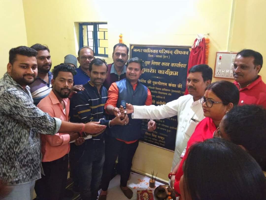 गेवरा दीपका न्यूज़:-दीपका राजीव मितान क्लब के कार्यालय उद्घाटन में मुख्य अतिथि विधायक पुरषोत्तम कंवर ने कहा कि राजीव मितान क्लब शासन की महत्वपूर्ण योजना है जिससे युवाओं को जोड़कर सभी जगहों पर सांस्कृतिक, खेलकूद का आयोजन करना है युवा मितान क्लब के कार्यालय से क्लब के सदस्यों को संचालन करने में सुविधा होगी, कार्यक्रम में प्रमुख रूप से अध्यक्ष संतोषी दीवान विशिष्ट अतिथि उपाध्यक्ष सुनील अग्रवाल, सीएमओ भोला सिंह ठाकुर, विधायक प्रतिनिधि विशाल शुक्ला,मदन राजपूत,रामकुमार कंवर, गया प्रसाद चंद्रा, हरिनारायण यादव,शांति राजपूत, श्रीदेवी नायर, युवा मितान क्लब के अध्यक्ष लोकेश महंत, मनोज कंवर शिवेंद्र सिंह एवम सदस्य उपस्थित थे