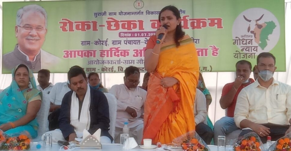 फसल और मवेशियों की सुरक्षा के लिए शासन की ओर से सृजित सुराजी ग्राम योजनांतर्गत विकासखण्ड स्तरीय टोका – छेका योजना ‘ का आज विधिवत शुभारम्भ किया गया . क्षेत्रीय विधायक व मध्य क्षेत्र आदिवासी विकास प्राधिकरण के उपाध्यक्ष पुरषोत्तम कँवर , जिला कलेक्टर रानू साहू व जिला पंचायत के सीईओ कुंदन कुमार की मौजूदगी में टोका – छेका से जुड़ा यह कार्यक्रम कटघोटा जनपद पंचायत के ग्राम देवरी ( कोराई ) स्थित गौठान में सम्पन्न हुआ इस कार्यक्रम के शुरुआत में विधायक व जिला क्लेक्टर रानू साहू के द्वारा गौवंश की विधिवत पूजा – अर्चना की गई गायों को चारा , गुड़ खिलाया गया सभी अतिथियों ने महिला समितियों व समूहों के उत्पाद स्टॉल का बिक्री से निरीक्षण करते हुए उनका उत्साहवर्धन किया . जनप्रतिनिधि व अधिकारियों ने इस अवसर पर गौठान में पौधरोपण करते हुए प्रकृति के संवर्धन , संरक्षण का भी संदेश दिया साथ ही विभिन्न ग्रामीण हितग्राहियों को शासन की ओर से उपकरण यंत्रों का वितरण भी किया गया कार्यक्रम में प्रमुख रूप से संतोषी दीवान, विधायक प्रतिनिधि विशाल शुक्ला, रामशरण कंवर,मुकेश कंवर एवम ग्रामीण जन उपस्थित थे
