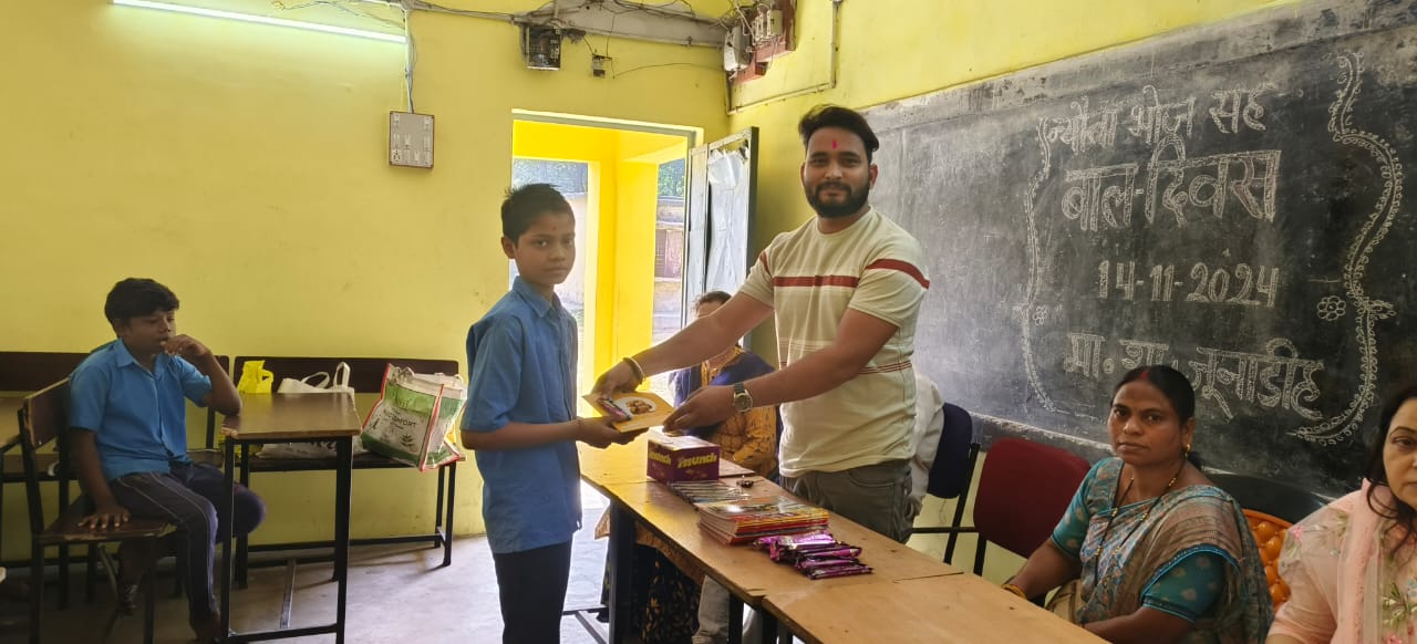 पार्षद विकास सोनी द्वारा बच्चों के साथ मिलकर मनाया गया बाल दिवस कार्यक्रम