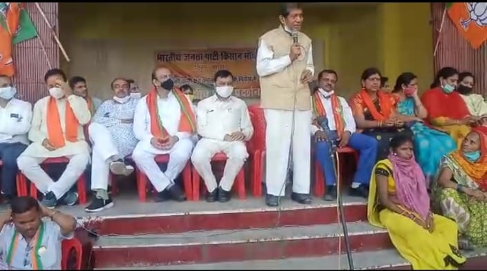भारतीय जनता पार्टी कोरबा किसान मोर्चा द्वारा खाद की कमी को लेकर किसान विरोधी भूपेश बघेल सरकार के खिलाफ प्रदेश व्यापीय धरना प्रदर्शन में भारतीय जनता पार्टी पिछड़ा वर्ग मोर्चा कोरबा ने अपना समर्थन देकर धरना प्रदर्शन का समर्थन किया ज्ञात हो कि प्रदेश नेतृत्व के आह्वान पर किसान मोर्चा द्वारा प्रत्येक जिले में एक दिवसीय धरना प्रदर्शन कार्यक्रम का आयोजन किया गया जिसमें खाद बीज व कालाबाजारी पर जिले के प्रमुख एवं शीर्ष नेतृत्व द्वारा जमकर हमला बोला गया कार्यक्रम में प्रमुख रूप से भारतीय जनता पार्टी प्रदेश उपाध्यक्ष पूर्व संसदीय सचिव लखन देवांगन एवं छत्तीसगढ़ शासन में पूर्व गृहमंत्री वरिष्ठ भाजपा नेता रामपुर विधायक ननकीराम कंवर द्वारा तीखा प्रहार किया गया इस अवसर पर पूर्व संसदीय सचिव लखन देवांगन ने कहा कि भूपेश सरकार किसानों के साथ छलावा कर रही है किसानों से गोबर खरीदी की गई और आज सोसाइटी में गोबर पर्याप्त मात्रा में खाद उपलब्ध नहीं होने व खाद की कालाबाजारी पर तीखा हमला बोला उन्होंने कहा कि प्रदेश में किसान अपनी दुर्दशा पर आंसू बहा रहे हैं खाद की कालाबाजारी चरम सीमा पर है कार्यक्रम में पूर्व गृह मंत्री एवं रामपुर विधायक ननकीराम कंवर ने प्रदेश सरकार की वादाखिलाफी कर्ज माफी नरवा गरवा घुरवा बारी पर हो रहे जमकर भ्रष्टाचार पर तीखा प्रहार किए कार्यक्रम मे भाजपा जिला अध्यक्ष डॉ राजीव सिंह ने कहा कि अन्नदाता किसान निश्चित तौर पर आज अपने आप को ठगा महसूस कर रहे हैं किसानों के साथ अन्याय बर्दाश्त नहीं किया जाएगा कार्यक्रम को राज्य खाद्य आयोग के पूर्व अध्यक्ष ज्योति नंद दुबे व सहकारी बैंक के पूर्व अध्यक्ष देवेंद्र पांडे श्याम लाल मरावी महिला मोर्चा जिलाध्यक्ष वैशाली रतनापरखी मंजू सिंह जिला महामंत्री संतोष देवांगन ने भी संबोधित किया इस अवसर पर किसान मोर्चा जिलाध्यक्ष चुलेश्वर राठौर भाजपा जिला उपाध्यक्ष प्रफुल्ल तिवारी महामंत्री डॉ पवन सिंह मणि शंकर पिछड़ा वर्ग मोर्चा जिलाध्यक्ष अनिरुद्ध चंद्रा महामंत्री दीपक जायसवाल