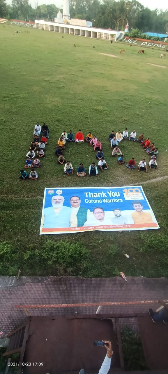 आज दिनांक 23 अक्टूबर 2021 को राष्ट्रिय नेतृत्व के आवाह्न पर 100 करोड़ वैक्सीन देश को समर्पित किये जाने पर देश के यशस्वी प्रधानमंत्री नरेन्द्र मोदी जी एवं कोरोना वारियरो को धन्यवाद करने हेतू भारतीय जनता युवा मोर्चा जिला कोरबा द्वारा मानव शृँखला(100 आकार) गेवरा स्टडियम में बनाया गया, जिसमे प्रमुख रुप से जिला संवाद प्रमुख मनोज मिश्रा,आई.टी सेल संयोजक लक्की नंदा,सोशल मीडिया संयोजक अजय चंद्रा,भाजयुमो जिला महामंत्री अनुप यादव,भाजयुमो विशेष आमंत्रित राधेश्याम सिंह, मंडल अध्यक्ष गण सुजीत सिंह,रवि साहू,दिलीप पटेल,कृष्णा पटेल,रामअवतार पटेल, महामंत्री दिपका सौरभ गुरुद्वान,महामंत्री कोरबा दीनदयाल पटेल,दिपका उपाध्यक्ष दुर्गेश यादव,मीडिया प्रभारी गौरव सिंह,कार्यालय प्रभारी पारस चंद्रा, आई टी सेल दिपका संयोजक अमित मानिकपुरी, मनीष चंद्रा, कृपा द्विवेदी सूरज साहू ,याबेश मसीह,हितेश अग्रवाल,प्रदीप,संदीप एवं बड़ी संख्या मे कार्यकर्ता उपस्थित रहे…