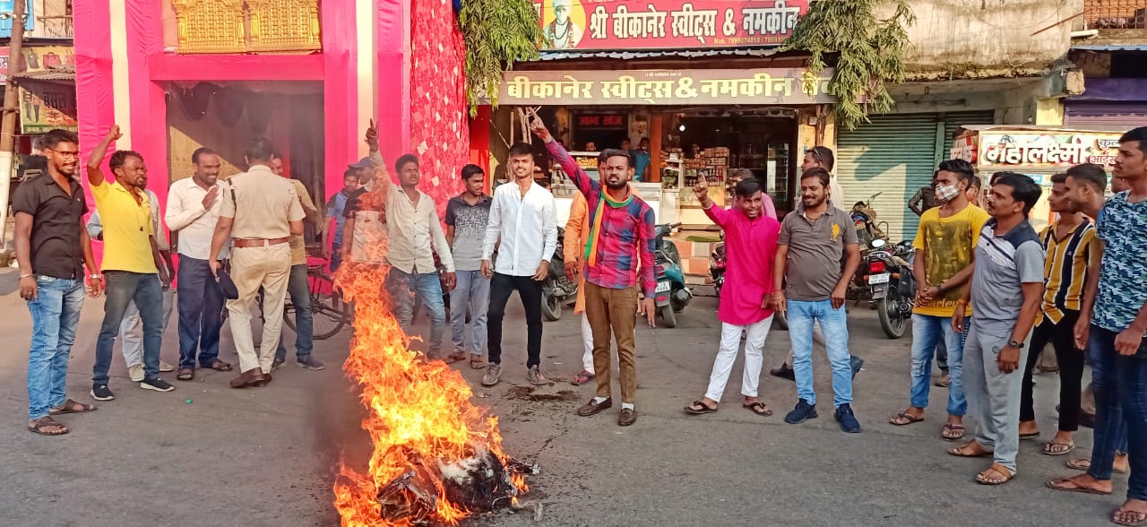 छत्तीसगढ़ कवर्धा में भाई भाई को काट रहा है और हमारा मुख्यमंत्री दूसरे राज्य में वाड्रा दीदी को सहानुभूति बांट रहा है इस तारतम्य में प्रदेश नेतृत्व के आवाहन पर एवं जिला नेतृत्व के निर्देश पर आज भारतीय जनता युवा मोर्चा मंडल दिपका के द्वारा भूपेश बघेल एवं मोहम्मद अकबर का पुतला दहन एवं विरोध प्रदर्शन का कार्यक्रम बजरंग चौक दिपका में किया गया…