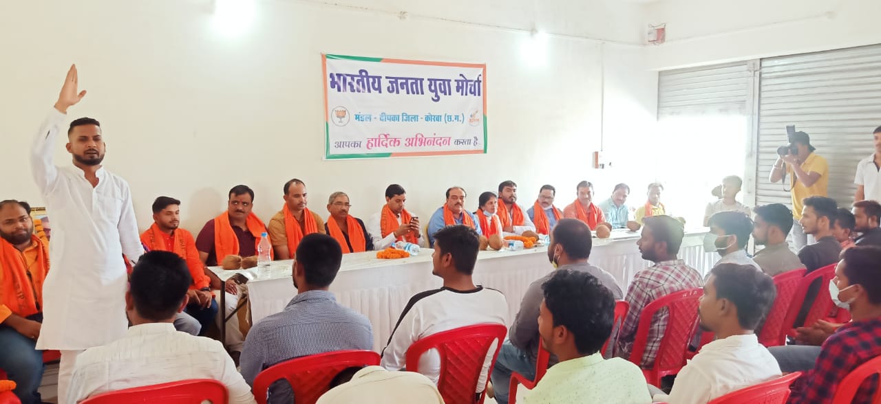 भारतीय जनता युवा मोर्चा मंडल दिपका की प्रथम मंडल कार्यसमिति बैठक दिनांक 7 अगस्त 2021 को तहसील रोड कार्यालय में आयोजित किया गया जिसमे धर्मांतरण एवं बेरोजगारी जैसे मुद्दे को जन जन तक पहूचाने एवं कांग्रेस सरकर की नाकामी को बताया गया…
