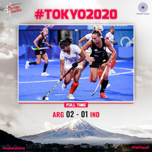 टोक्यो ओलंपिक महिला हॉकी के दूसरे सेमीफाइनल मैच में भारतीय टीम रोमांचक मुकाबले में अर्जेंटीना से 2-1 से हार गई।