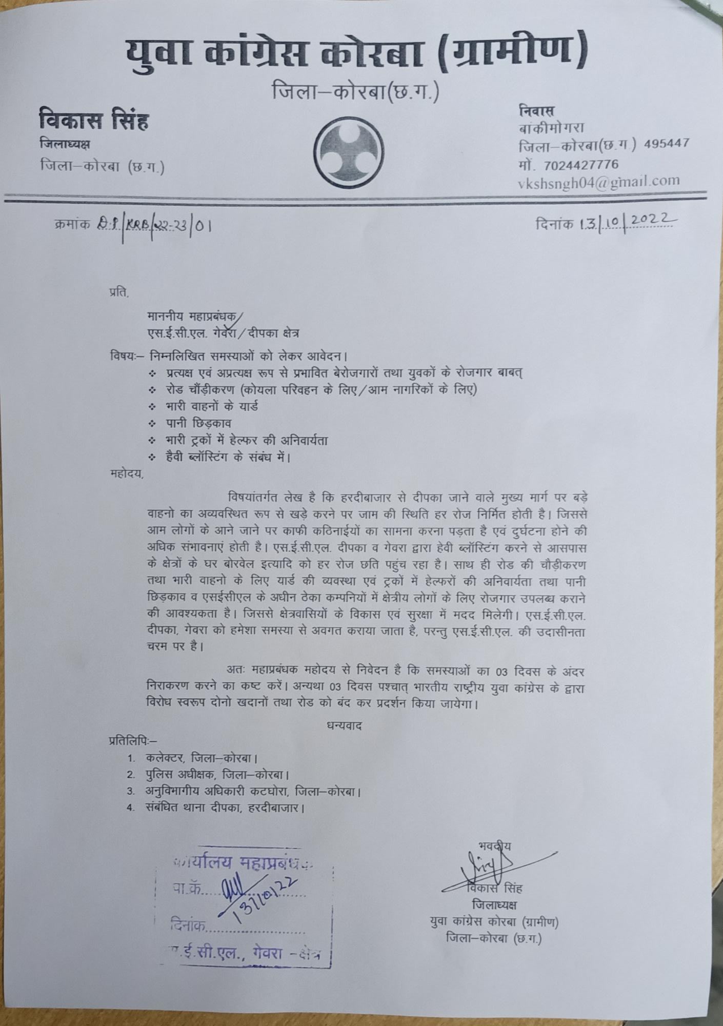 Home Uncategorized रोजगार को लेकर युवा कांग्रेस बंद करेगी गेवरा खदान – विकाश सिंह Uncategorized रोजगार को लेकर युवा कांग्रेस बंद करेगी गेवरा खदान – विकाश सिंह By Anurag Rathore - October 13, 2022 348 0 FacebookTwitterPinterestWhatsApp
