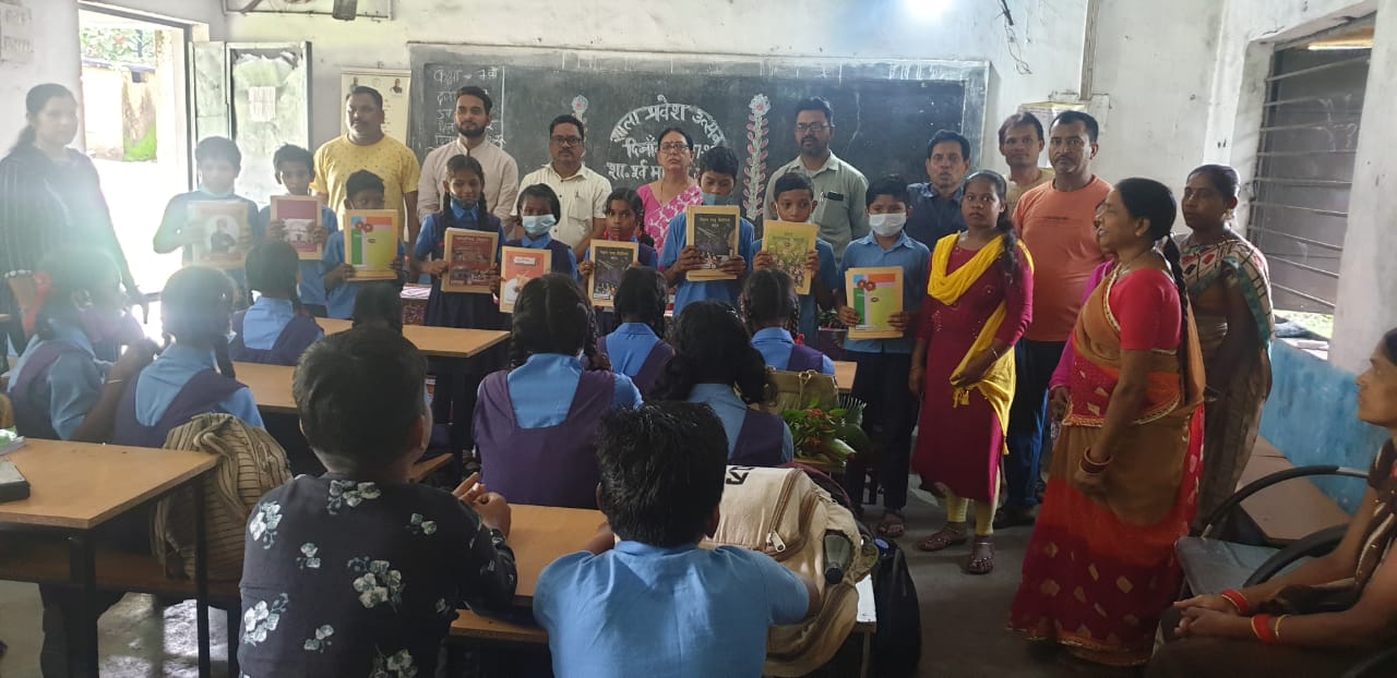 आज दिनांक – 7/7/2022, दिन – गुरुवार वार्ड क्र – 20 शासकीय पूर्व माध्यमिक शाला जूनाडीह में शाला प्रवेश उत्सव हर्षोल्लास से मनाया गया। नव प्रवेशित विद्यार्थियों को तिलक लगाकर ,मिठाई खिलाकर ,पुस्तक वितरण किया गया। कार्यक्रम की अध्यक्षता नोडल प्राचार्य श्रीमती नीलू अवस्थी हाई स्कूल विजय नगर ने किया। मुख्य अतिथि नगर पालिका परिषद के पूर्व पार्षद एवं भाजपा जिला मंत्री श्री राजेंद्र राजपूत जी एवं विशिष्ट अतिथि वार्ड पार्षद श्री विकास सोनी जी एवं पार्षद श्री दीपक गिलहरे जी रहे। शाला प्रबंधन समिति के सदस्य एवं पालक गण उपस्थित रहे। कार्यक्रम में अतिथियों के अलावा s.m.c. सदस्य, पालकों में श्री रंगलाल, सुनर देवी, शांति देवी ,निर्मला ,जमुना ,लक्ष्मी बाई उपस्थित रहे। शाला के प्र. पा. श्री हरिहर कोशले, शिक्षिका श्रीमती अंजू सिंह, राजकुमारी यादव, कार्यक्रम में सहयोग दिये।कार्यक्रम का संचालन श्रीमती विमला देवांगन ने किया।