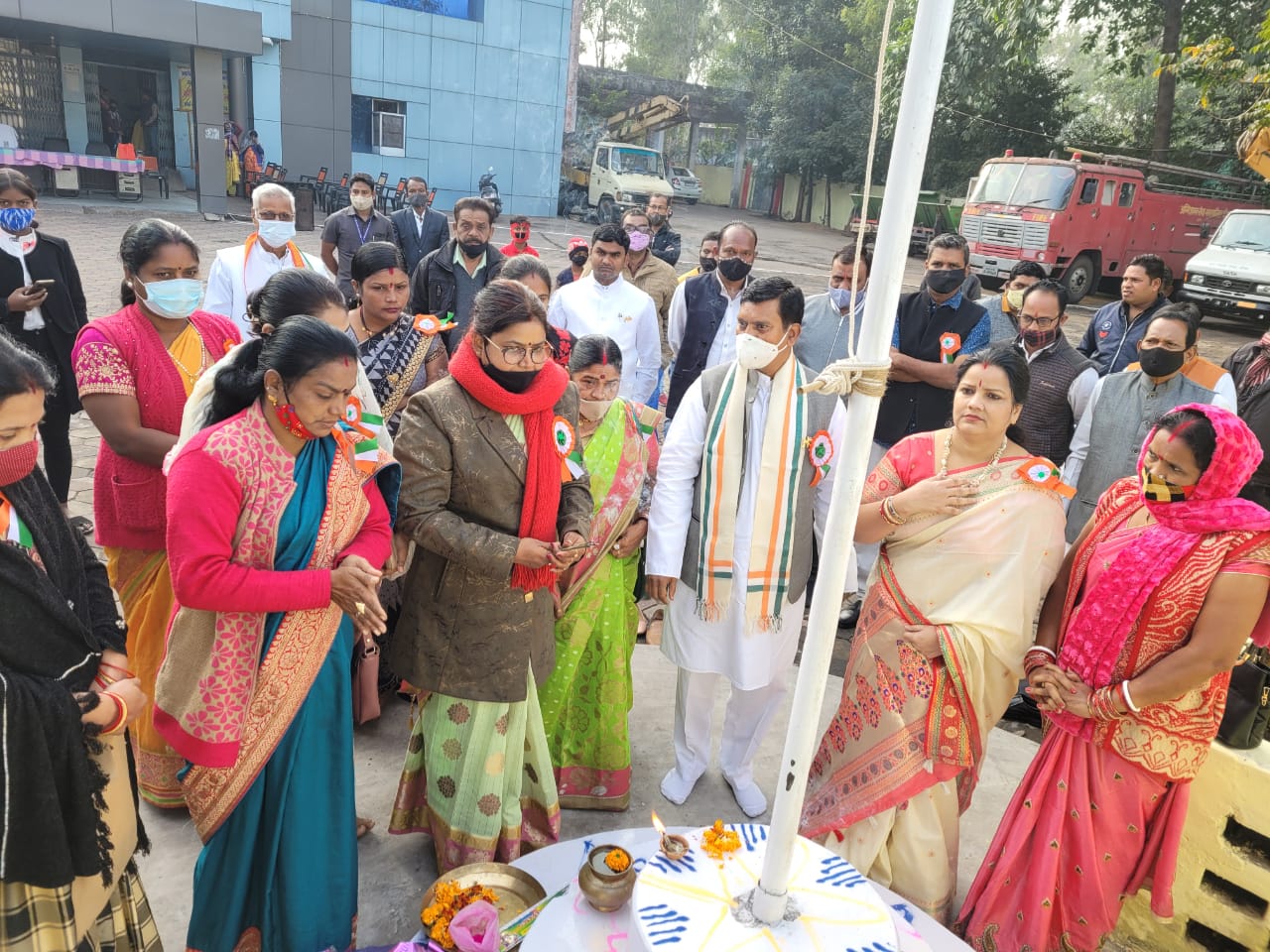 दीपका-कटघोरा विधानसभा क्षेत्र के विधायक राज्य मंत्री दर्जा प्राप्त माननीय पुरुषोत्तम कंवर जी के द्वारा 73 वें गणतंत्र दिवस के अवसर पर नगर पालिका परिषद दीपका कार्यालय में ध्वजारोहण किया गया कार्यक्रम के मुख्य अतिथि विधायक पुरुषोत्तम कंवर जी कार्यक्रम की अध्यक्षता कर रही नगर पालिका अध्यक्ष श्रीमती संतोषी दीवान ने कार्यक्रम में उपस्थित सभी जनप्रतिनिधि, गणमान्य नागरिकगणों, अधिकारी एवं कर्मचारियों को गणतंत्र दिवस की बधाई एवं शुभकामनाएं दी सर्वप्रथम विधायक जी द्वारा भारत माता एवं महात्मा गांधी के तैल चित्र पर दीप प्रज्वलित करके माल्यार्पण करते हुए कार्यक्रम का शुभारंभ किया गया तत्पश्चात सभी अतिथियों द्वारा भारत माता एवं गांधीजी के तैल चित्र पर माल्यार्पण किया गया विधायक जी द्वारा ध्वजारोहण के पश्चात सभी के द्वारा एक स्वर में राष्ट्रगान गाया गया इस अवसर पर तनवीर अहमद, प्रशांति सिंह, मनोरा लकड़ा, पोषक दास महंत, पार्षद राम कुमार कवर, गया प्रसाद चंद्रा , हर्षित देवी राजपूत, राकेश कुमार सिंह , नील कुसुम खेस, नाजिया बानो, निशा बंजारे , कुसुम केवट , संगीता साहू,आशा देवी पंडित, दीपक गिलहरे, विकास सोनी ,एल्डरमेन कुलदीप तिवारी , अफजल अली , भगवती यादव , हरि यादव, जगदीश सिंह , विशाल शुक्ला, उत्तम कुमार दुबे, नितेश शर्मा, इफ्तिखार अली, करम सिह राजपुत,राम पुकार पंडित ,देवेन्द्र खरे, राजकुमार सिंह, ओम नारायण सिह, हिमांशु चंद्रा, व्यास नारायण साहू, गोपीचंद्र श्रीवास, लोकेश विश्वास, कांति सिंह, बलजीत सिंह, अजय पटेल गणमान्य नागरिक सहित नगर पालिका के समस्त अधिकारी कर्मचारी उपस्थित थे