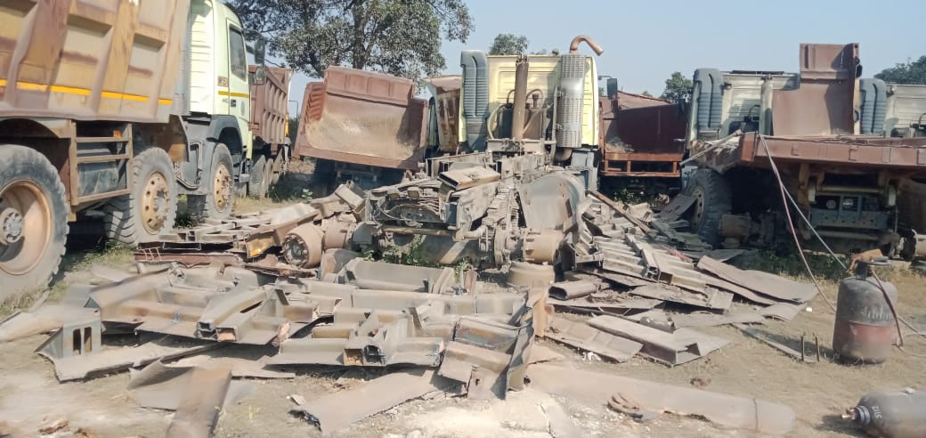 सद्भाव इंफ्रास्ट्रक्चर प्राइवेट लि. के कोरबा हरदीबाजार स्थित यार्ड में करोड़ों के वाहनों को कबाड़ चोरों द्वारा कटिंग कर बेचा जा रहा है