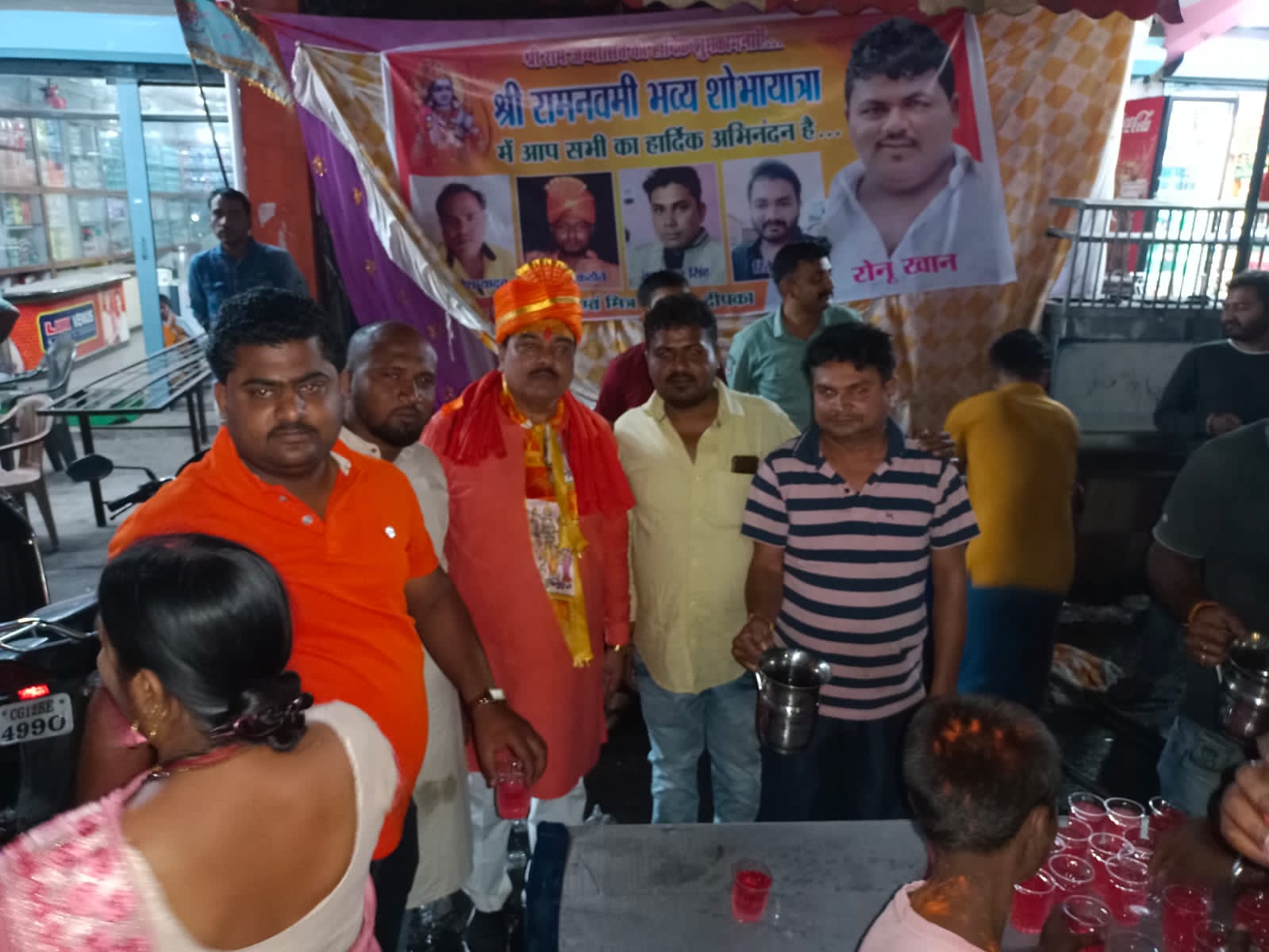 समाजसेवी सोनू खान द्वारा रामनवमी भव्य शोभायात्रा श्रद्धालुओं को शरबत एवं केला वितरण किया गया
